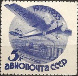 Visibility: public Image owner: none airmail 1933 5k ultra issue=Soviet civil aviation 10th dt=airplane over landscapes (1933) d=ANT-9 over furnaces of Donbass wmk=Greek border & rosettes perf=13.75 Crops No visible images cropped from this one. Measurements Resolution is unknown. Source Source name: Colnect File URL: http://i.colnect.net/b/456/867/Aircraft-ANT-9-over-furnaces-of-Donbass.jpg Uploaded August 24, 2014, 8:30 pm by Stan Shebs |
