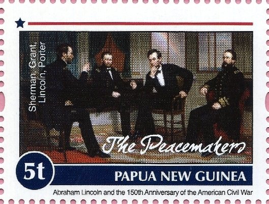 Visibility: public Image owner: none postage 4/20/2011 5t multi issue=150th Anniversary of the American Civil War d=Sherman Grant Lincoln & Porter The Peacemakers unwmk Crops No visible images cropped from this one. Measurements Resolution is unknown. Source Source name: Colnect File URL: http://i.colnect.net/b/2946/500/Sherman-Grant-Lincoln-and-Porter--quot-The-Peacemakers-quot-.jpg Uploaded July 12, 2016, 3:25 pm by Stan Shebs |