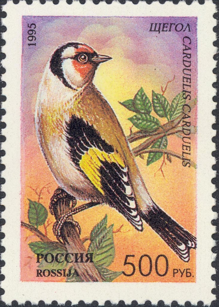 Visibility: public Image owner: none postage 6/15/1995 500r multi dt=Songbirds (1995 Russia) d=Carduelis carduelis (1995 Russia) unwmk perf=12.25x11.75 Crops No visible images cropped from this one. Measurements Resolution is unknown. Source Source name: Colnect File URL: http://i.colnect.net/images/b/2819/793/European-Goldfinch-Carduelis-carduelis.jpg Uploaded July 20, 2016, 5:25 pm by Stan Shebs |