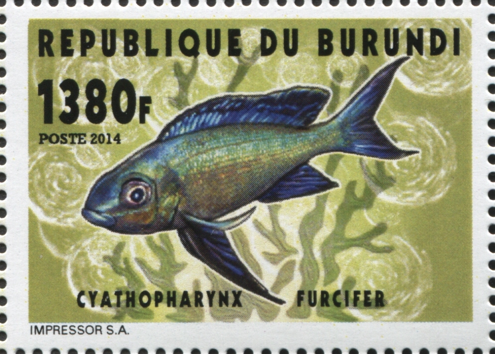 Visibility: public Image owner: none postage 10/28/2014 1380fr multi issue=Fishes from Lake Tanganyika d=Cyathopharynx furcifer unwmk Crops No visible images cropped from this one. Measurements Resolution is unknown. Source Source name: WNS File URL: http://www.wnsstamps.post//stamps/2014/BI/BI001.14.jpg Uploaded April 11, 2017, 1:40 pm by Stan Shebs |