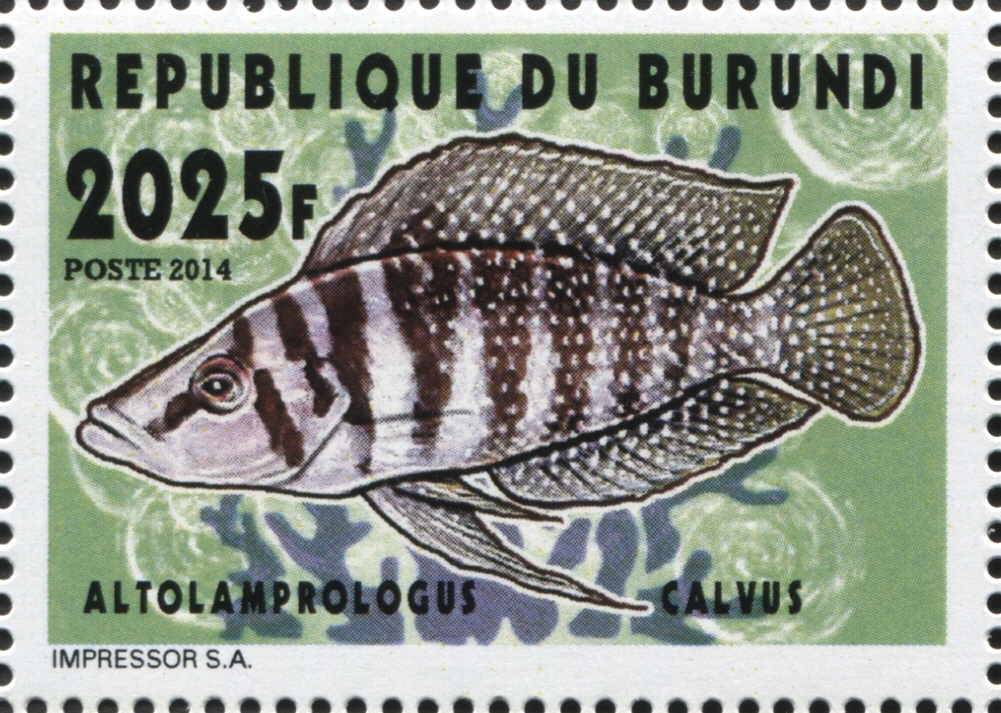 Visibility: public Image owner: none postage 10/28/2014 2025fr multi issue=Fishes from Lake Tanganyika d=Altolamprologus calvus unwmk Crops No visible images cropped from this one. Measurements Resolution is unknown. Source Source name: WNS File URL: http://www.wnsstamps.post//stamps/2014/BI/BI011.14.jpg Uploaded April 11, 2017, 1:41 pm by Stan Shebs |