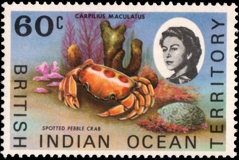 Visibility: public Image owner: none postage 60c multi issue=1968 dt=marine fauna (1968) d=Carpilius maculatus (1970) wmk=St Edwards crown & CA Crops No visible images cropped from this one. Measurements Resolution is unknown. Source Source name: Colnect File URL: http://i.colnect.net/b/3966/265/Spotted-Pebble-Crab.jpg Uploaded April 12, 2017, 4:52 pm by Stan Shebs |
