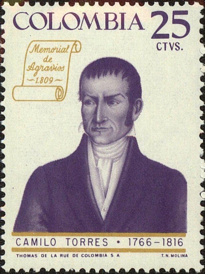 Visibility: public Image owner: none postage 1/18/1967 25c dkvio&bis issue=Famous Colombians dt=famous men (1967) d=Camilo Torres (1967) unwmk perf=13.5x14 Crops No visible images cropped from this one. Measurements Resolution is unknown. Source Source name: Colnect File URL: http://i.colnect.net/b/3806/994/Camilo-Torres-1766-1816.jpg Uploaded April 16, 2017, 3:10 pm by Stan Shebs |