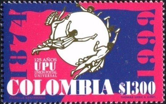 |   (543 x 339 pixels) | Type: stamp Issuer: Colombia  Date: 1999 Denom: ? Visibility: public Image owner: none postage 10/29/1999 1300p multi issue=125th Anniversary of Universal Postal Union unwmk perf=14.25 Crops No visible images cropped from this one. Measurements Resolution is unknown. Source Source name: Colnect File URL: http://i.colnect.net/b/3898/418/UPU-emblem-numbers--1874--and--1999-.jpg Uploaded April 16, 2017, 3:26 pm by Stan Shebs |