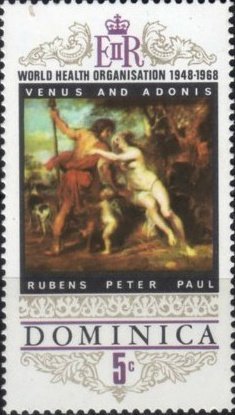 Visibility: public Image owner: none postage 1/30/1969 5c multi issue=20th Anniversary of World Health Organization d=Venus and Adonis wmk=mult crown & script CA perf=15 Crops No visible images cropped from this one. Measurements Resolution is unknown. Source Source name: Colnect File URL: http://i.colnect.net/b/3171/003/Painting-by-Rubens.jpg Uploaded April 17, 2017, 7:24 pm by Stan Shebs |