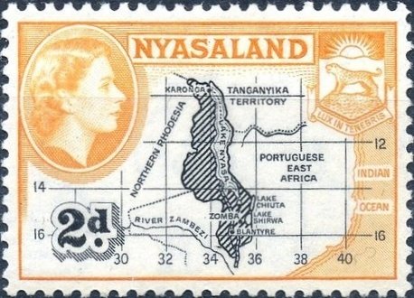Visibility: public Image owner: none Current identification: postage 9/1/1953 2p yelorg&blk issue=Elizabeth II pictorials d=map of Nyasaland & Queen Elizabeth II wmk=mult crown & script CA Crops No visible images cropped from this one. Measurements Resolution is unknown. Source Source name: Colnect File URL: http://i.colnect.net/b/2902/723/Map-of-Nyasaland.jpg Uploaded April 18, 2017, 12:32 am by Stan Shebs |