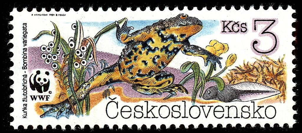 Visibility: public Image owner: none postage 7/18/1989 3kc multi dt=endangered amphibians d=Bombina variegata unwmk perf=11.5x11.75 Crops No visible images cropped from this one. Measurements Resolution is unknown. Source Source name: Colnect File URL: http://i.colnect.net/b/3789/424/Yellow-bellied-Toad-Bombina-variegata.jpg Uploaded April 21, 2017, 8:45 pm by Stan Shebs |