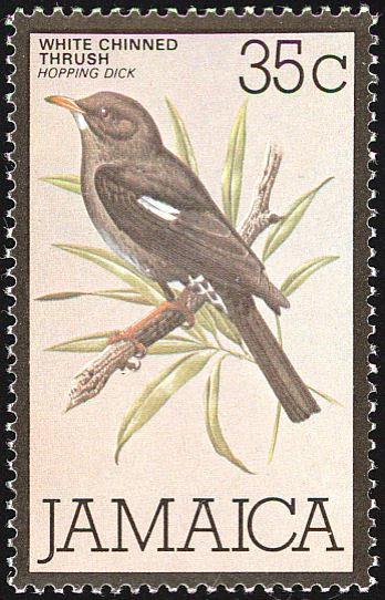 Visibility: public Image owner: none postage 4/28/1980 35c multi issue=1979 dt=birds (1979 Jamaica) d=White-chinned Thrush wmk=Multiple "J" & Pineapple Crops No visible images cropped from this one. Measurements Resolution is unknown. Source Source name: Colnect File URL: http://i.colnect.net/b/758/772/White-chinned-Thrush-Turdus-aurantius.jpg Uploaded August 25, 2014, 1:51 pm by Stan Shebs |