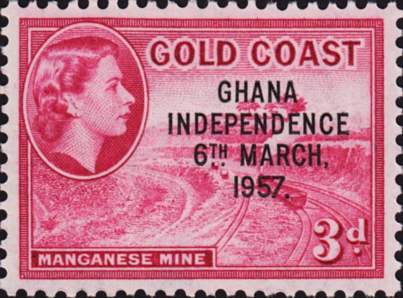 Visibility: public Image owner: none postage 3/6/1957 3p issue=independence ovpt ovpt=GHANA//INDEPENDENCE//6TH MARCH,//1957. oc=blk on=issuer=Gold Coast-3p Crops No visible images cropped from this one. Measurements Resolution is unknown. Source Source name: Colnect File URL: http://i.colnect.net/b/3515/839/Manganese-Mine.jpg Uploaded April 27, 2017, 6:39 pm by Stan Shebs |