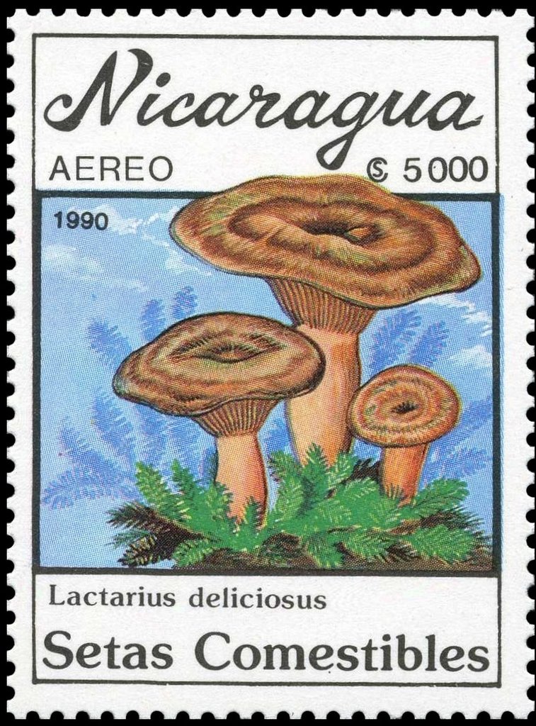 Visibility: public Image owner: none airmail 7/15/1990 5000c$ multi dt=mushrooms (1990 Nicaragua) d=Lactarius deliciosus (1990) unwmk perf=12.75 Crops No visible images cropped from this one. Measurements Resolution is unknown. Source Source name: Colnect File URL: http://i.colnect.net/b/3509/374/Lactarius-deliciosus.jpg Uploaded May 24, 2017, 8:39 pm by Stan Shebs |