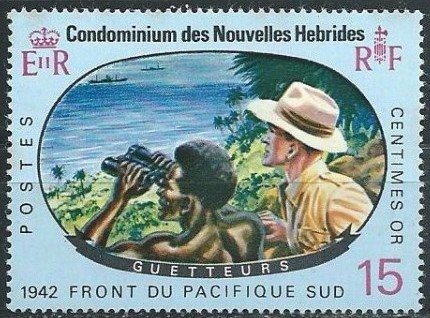 Visibility: public Image owner: none postage 9/26/1967 15c multi issue=Pacific War 25th d=The coast watchers unwmk perf=14x13.5 Crops No visible images cropped from this one. Measurements Resolution is unknown. Source Source name: Colnect File URL: http://i.colnect.net/b/3802/841/Inhabitants-of-the-New-Hebrides-and-Australians-as-Coast-Gua.jpg Uploaded May 29, 2017, 3:54 am by Stan Shebs |