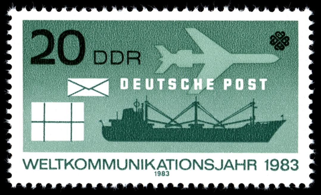 Visibility: public Image owner: none postage 2/8/1983 20pf multi issue=World Communication Year d=Mail transport by sea & air unwmk Crops No visible images cropped from this one. Measurements Resolution is unknown. Source Source name: Wikimedia Commons File URL: http://upload.wikimedia.org/wikipedia/commons/b/be/Stamps_of_Germany_%28DDR%29_1983%2C_MiNr_2772.jpg Uploaded December 1, 2012, 1:41 pm by Stan Shebs |