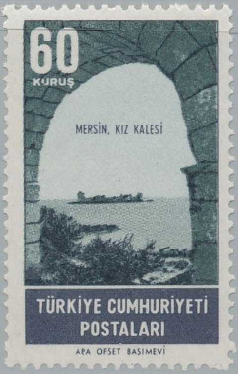 Visibility: public Image owner: none postage 6/11/1964 60k dt=scenic (1964 Turkey) unwmk perf=13 Crops No visible images cropped from this one. Measurements Resolution is unknown. Source Source name: Colnect File URL: http://i.colnect.net/b/2577/076/Kiz-Kulesi-Mersin.jpg Uploaded June 15, 2017, 4:20 pm by Stan Shebs |