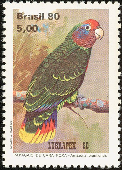 Visibility: public Image owner: none postage 10/18/1980 5cr multi dt=parrots (1980 Brazil) d=Amazona brasiliensis unwmk perf=13.75 Crops No visible images cropped from this one. Measurements Resolution is unknown. Source Source name: Colnect File URL: http://i.colnect.net/images/b/712/890/Red-tailed-Amazon-Amazona-brasiliensis.jpg Uploaded August 25, 2014, 5:13 pm by Stan Shebs |