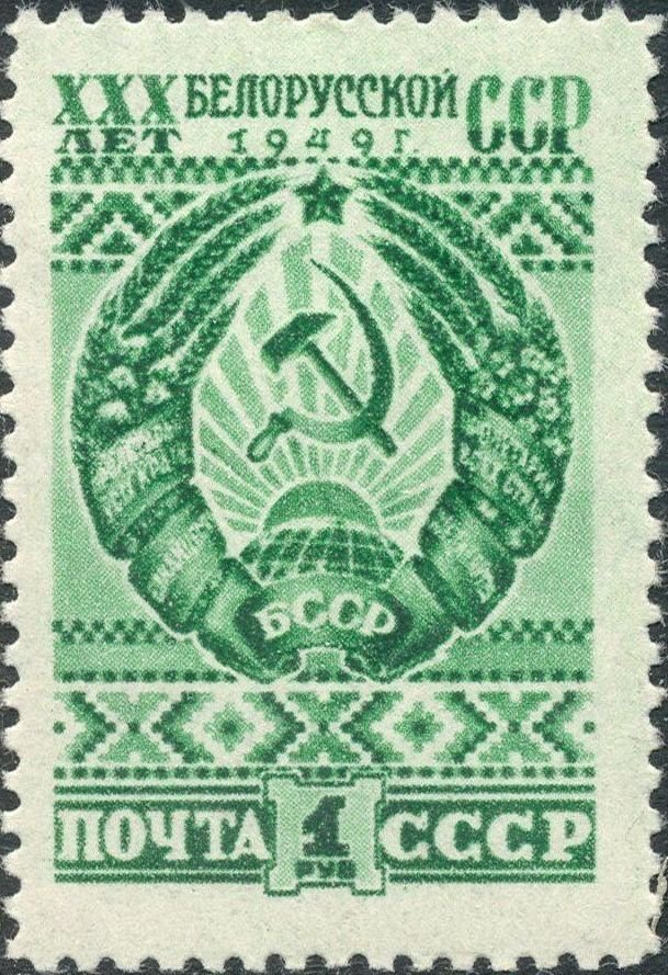 Visibility: public Image owner: none postage 1/4/1949 1r grn issue=Byelorussian SSR 30th d=arms of Byelorussian SSR unwmk perf=12 Crops No visible images cropped from this one. Measurements Resolution is unknown. Source Source name: Colnect File URL: http://i.colnect.net/b/2590/571/Coat-of-Arms-of-Byelorussian-SSR.jpg Uploaded June 19, 2017, 8:18 pm by Stan Shebs |
