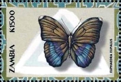 Visibility: public Image owner: none postage 2/8/2000 1500k multi issue=Butterflies of Africa 2000 dt=butterflies (2000 Zambia) d=Euphaedra eupalus unwmk Crops No visible images cropped from this one. Measurements Resolution is unknown. Source Source name: Colnect File URL: http://i.colnect.net/b/3505/141/Euphaedra-eupaulus.jpg Uploaded June 22, 2017, 7:06 pm by Stan Shebs |