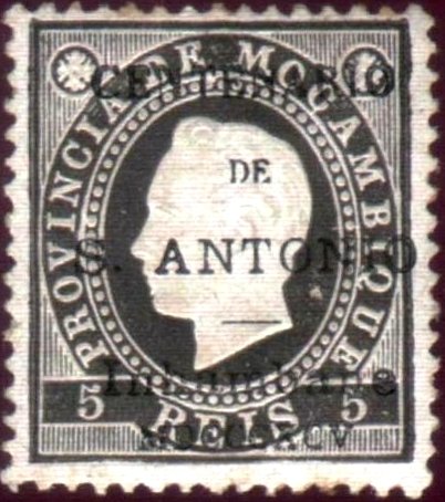 Visibility: public Image owner: none postage 7/1/1895 5r blk issue=St Anthony d=King Luís I (1886) ovpt=CENTENARIO//DE//S. ANTONIO//bar//Inhambane//MDCCCXCV oc=blk on=issuer=Mozambique-1886-5r unwmk perf=12.5 Crops No visible images cropped from this one. Measurements Resolution is unknown. Source Source name: Colnect File URL: http://i.colnect.net/b/3554/974/Overprint-on-Mocambique-stamp.jpg Uploaded July 6, 2017, 3:45 pm by Stan Shebs |