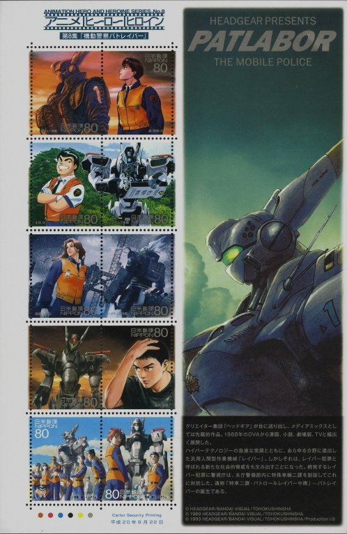 Visibility: public Image owner: none Crops No visible images cropped from this one. Measurements Resolution is unknown. Source Source name: Colnect File URL: http://i.colnect.net/b/4036/553/Mini-Sheet-Patlabor-the-Mobile-Police.jpg Uploaded July 21, 2017, 11:31 am by Stan Shebs |