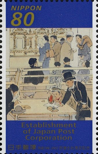 Visibility: public Image owner: none postage 10/1/2007 80y multi issue=Establishment of Japan Post Corporation dt=History of Japanese Postal services d=Counter scene unwmk perf=13.5 Crops No visible images cropped from this one. Measurements Resolution is unknown. Source Source name: Colnect File URL: http://i.colnect.net/b/4018/766/Post-Office-Counter-Scene.jpg Uploaded July 21, 2017, 2:54 pm by Stan Shebs |