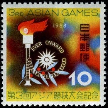 Visibility: public Image owner: none postage 5/24/1958 10y multi issue=3rd Asian Games d=torch & emblem unwmk perf=13.5 Crops No visible images cropped from this one. Measurements Resolution is unknown. Source Source name: Colnect File URL: http://i.colnect.net/b/3926/226/Flame-and-Games-Emblem.jpg Uploaded July 21, 2017, 4:03 pm by Stan Shebs |