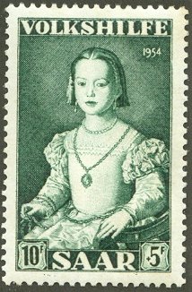 Type: stamp Issuer: Saar Date: 1954 Denom: ?