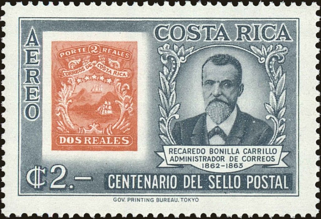 Visibility: public Image owner: none airmail 6/26/1963 2col blgray&redorg issue=100th Anniversary of Costa Rican Stamps unwmk perf=13.5 Crops No visible images cropped from this one. Measurements Resolution is unknown. Source Source name: Colnect File URL: http://i.colnect.net/b/4397/705/Stamp-of-1863-and-Recaredo-Bonilla-Carrillo.jpg Uploaded October 30, 2017, 6:36 pm by Stan Shebs |