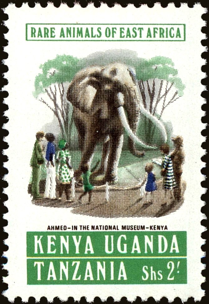 Visibility: public Image owner: none postage 9/11/1975 2sh multi issue=Rare Animals d=Loxodonta africana (1975 Kenya, Uganda, Tanzania) unwmk Crops No visible images cropped from this one. Measurements Resolution is unknown. Source Source name: Colnect File URL: http://i.colnect.net/b/4010/709/Stuffed-Elephant--Ahmed--Kenyan-National-Museum.jpg Uploaded November 6, 2017, 3:47 pm by Stan Shebs |