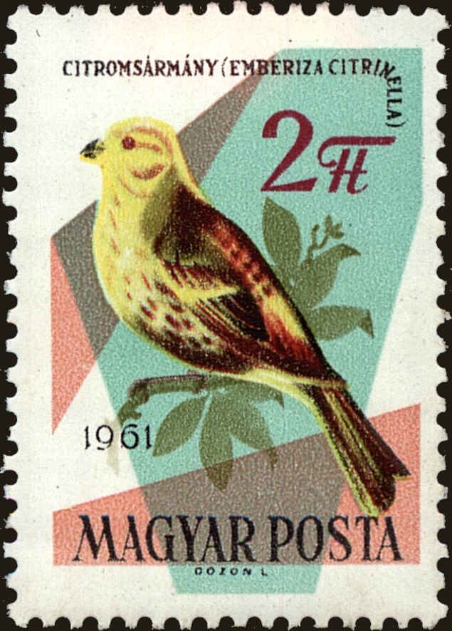 Visibility: public Image owner: none postage 12/18/1961 2Ft multi dt=birds (1961 Hungary) d=Emberiza citrinella (1961) wmk=stars (Cuba) perf=12.5x11.5 Crops No visible images cropped from this one. Measurements Resolution is unknown. Source Source name: Colnect File URL: http://i.colnect.net/b/4405/035/Yellowhammer-Emberiza-citrinella.jpg Uploaded November 26, 2017, 6:11 pm by Stan Shebs |