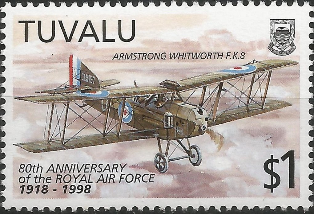 Visibility: public Image owner: none postage 4/1/1998 $1 multi issue=80th Anniversary of the Royal Air Force d=Armstrong Whitworth F.K.8 wmk=crown & script CA perf=13.25x13.5 Crops No visible images cropped from this one. Measurements Resolution is unknown. Source Source name: Colnect File URL: http://i.colnect.net/b/4536/579/Armstrong-Withworth-FK8.jpg Uploaded January 9, 2018, 9:48 pm by Stan Shebs |