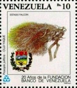 Visibility: public Image owner: none postage 6/27/1990 10b multi issue=20th Anniversary of Bank of Venezuela dt=trees & state arms d=Prosopis juliflora & arms of Falcon unwmk perf=12 Crops No visible images cropped from this one. Measurements Resolution is unknown. Source Source name: Colnect File URL: http://i.colnect.net/b/4164/548/Prosopis-juliflora-Falcon.jpg Uploaded January 13, 2018, 8:05 pm by Stan Shebs |