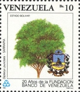 Visibility: public Image owner: none postage 6/27/1990 10b multi issue=20th Anniversary of Bank of Venezuela dt=trees & state arms d=Dipteryx punctata unwmk perf=12 Crops No visible images cropped from this one. Measurements Resolution is unknown. Source Source name: Colnect File URL: http://i.colnect.net/b/4163/221/Dipteryx-punctata.jpg Uploaded January 13, 2018, 8:05 pm by Stan Shebs |