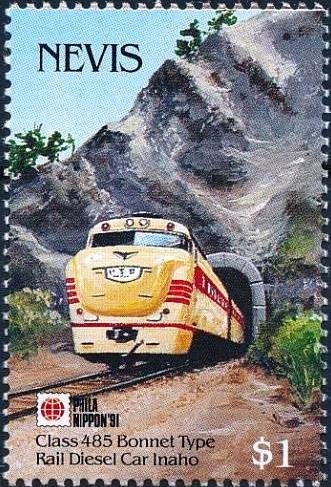 Visibility: public Image owner: none postage 8/12/1991 $1 multi issue=Phila Nippon '91 d=Class 485 Bonnet Type wmk=crown & CA perf=14 Crops No visible images cropped from this one. Measurements Resolution is unknown. Source Source name: Colnect File URL: http://i.colnect.net/b/4411/331/Class-485-diesel-rail-car.jpg Uploaded January 23, 2018, 9:17 pm by Stan Shebs |
