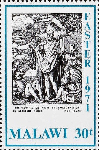 Visibility: public Image owner: none postage 4/7/1971 30t blk&bl issue=Easter 1971 wmk=mult cockerel Crops No visible images cropped from this one. Measurements Resolution is unknown. Source Source name: Colnect File URL: http://i.colnect.net/b/4972/457/The-Resurrection-from--The-Small-Passion--by-Albrecht-Dürer.jpg Uploaded June 20, 2018, 3:56 pm by Stan Shebs |