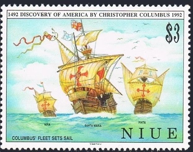 Visibility: public Image owner: none postage 5/22/1992 $3 multi issue=500th Anniversary of the Discovery of America d="Santa Maria", "Nina", and "Pinta" unwmk Crops No visible images cropped from this one. Measurements Resolution is unknown. Source Source name: Colnect File URL: http://i.colnect.net/b/4691/031/Columbus’-fleet.jpg Uploaded June 28, 2018, 6:37 pm by Stan Shebs |