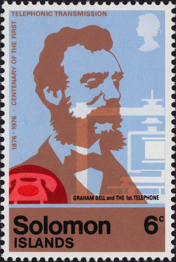 Visibility: public Image owner: none postage 7/26/1976 6c multi issue=telephone 100th d=Alexander Graham Bell (1976 Solomon Islands) wmk=mult crown & script CA Crops No visible images cropped from this one. Measurements Resolution is unknown. Source Source name: Colnect File URL: http://i.colnect.net/b/5028/379/Alexander-Graham-Bell.jpg Uploaded July 10, 2018, 7:44 pm by Stan Shebs |