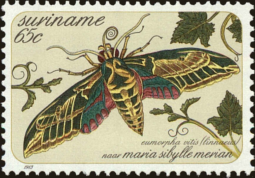 Visibility: public Image owner: none postage 9/14/1983 65c multi dt=butterfly drawings by Maria Sibylle Merian d=Dupo vitis unwmk Crops No visible images cropped from this one. Measurements Resolution is unknown. Source Source name: Colnect File URL: http://i.colnect.net/b/4994/856/Vine-Sphinx-Eumorpha-vitis.jpg Uploaded July 13, 2018, 2:33 am by Stan Shebs |