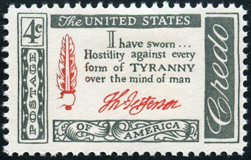 Visibility: public Image owner: none postage 5/18/1960 4c gray&ver issue=American Credo d=Jefferson quotation unwmk perf=11 Crops No visible images cropped from this one. Measurements Resolution is unknown. Source Source name: Colnect File URL: http://i.colnect.net/b/4840/484/Thomas-Jefferson-Quotation.jpg Uploaded July 23, 2018, 9:41 pm by Stan Shebs |