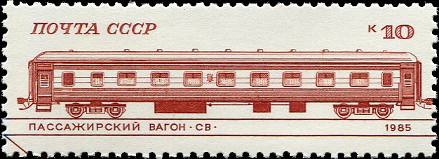 Visibility: public Image owner: none postage 6/15/1985 10k brn dt=locomotives and Rolling Stock d=SV passenger coach unwmk perf=12.25x12 Crops No visible images cropped from this one. Measurements Resolution is unknown. Source Source name: Colnect File URL: http://i.colnect.net/b/4295/046/Passenger-Carriage.jpg Uploaded July 25, 2018, 7:16 pm by Stan Shebs |