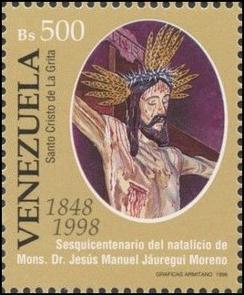 Visibility: public Image owner: none postage 1/30/1999 500b multi issue=150th Anniversary of the Birth of Monseigneur Jesus Manuel Jauregui Moreno unwmk Crops No visible images cropped from this one. Measurements Resolution is unknown. Source Source name: Colnect File URL: http://i.colnect.net/b/5033/859/Santo-Cristo-de-La-Grita.jpg Uploaded July 26, 2018, 7:49 pm by Stan Shebs |