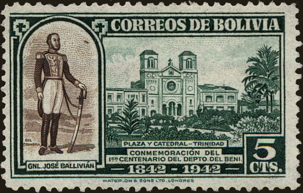 Visibility: public Image owner: none postage 11/18/1943 5c grn&dkbrn issue=Beni 100th d=Ballivian & Cathedral of Trinidad unwmk Crops No visible images cropped from this one. Measurements Resolution is unknown. Source Source name: Colnect File URL: http://i.colnect.net/b/5396/076/Departement-Beni.jpg Uploaded January 18, 2019, 8:28 pm by Stan Shebs |