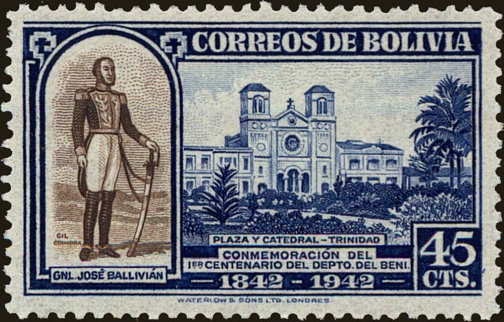 Visibility: public Image owner: none postage 11/18/1943 45c ultra&dkbrn issue=Beni 100th d=Ballivian & Cathedral of Trinidad unwmk Crops No visible images cropped from this one. Measurements Resolution is unknown. Source Source name: Colnect File URL: http://i.colnect.net/b/5396/078/Departement-Beni.jpg Uploaded January 18, 2019, 8:28 pm by Stan Shebs |