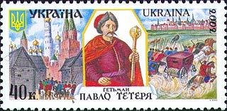 Visibility: public Image owner: none postage 1/17/2002 40k multi dt=Ukrainian hetmans d=Hetman Pavlo Teteria unwmk Crops No visible images cropped from this one. Measurements Resolution is unknown. Source Source name: Colnect File URL: http://i.colnect.net/b/331/214/Pavlo-Teteria.jpg Uploaded August 26, 2014, 8:25 pm by Stan Shebs |