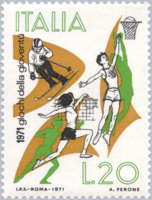 Visibility: public Image owner: none postage 6/26/1971 20l multi issue=Youth Games 1971 d=skiing volleyball & basketball wmk=stars Crops No visible images cropped from this one. Measurements Resolution is unknown. Source Source name: Colnect File URL: http://i.colnect.net/b/172/311/Youth-Games.jpg Uploaded January 27, 2013, 5:11 am by Stan Shebs |