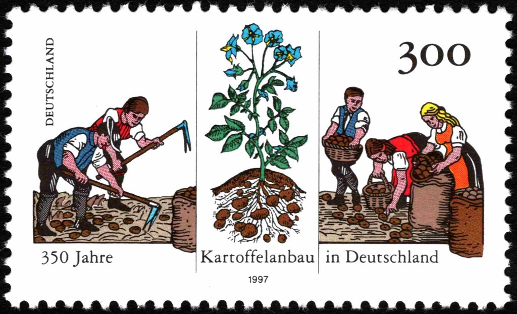 Visibility: public Image owner: none postage 9/17/1997 300(pf) multi d=Growing potatoes unwmk perf=13x13.25 Crops No visible images cropped from this one. Measurements Resolution is unknown. Source Source name: Colnect File URL: http://i.colnect.net/b/5218/182/Potato-plant-and-cultivation.jpg Uploaded February 8, 2019, 4:55 pm by Stan Shebs |