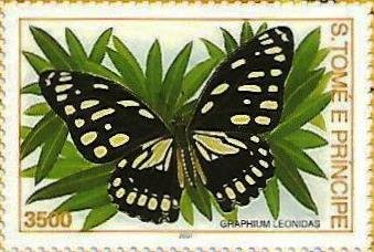 Visibility: public Image owner: none postage 7/15/2001 3500db multi issue=Butterflies 2001 dt=butterflies (2001 St. Thomas & Prince Islands) d=Graphium leonidas (2001) unwmk perf=13.25x13.5 Crops No visible images cropped from this one. Measurements Resolution is unknown. Source Source name: Colnect File URL: http://i.colnect.net/b/5296/853/Graphium-leonidas.jpg Uploaded March 20, 2019, 3:56 pm by Stan Shebs |