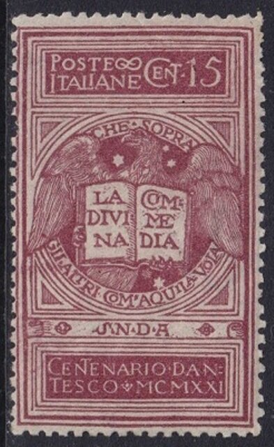 Visibility: public Image owner: none postage 9/28/1921 15c viobrn issue=Dante death 600th d=eagle holding the divine comedy wmk=crown (Italy) perf=14 Crops No visible images cropped from this one. Measurements Resolution is unknown. Source Source name: Colnect File URL: http://i.colnect.net/b/5782/794/Eagle-holding-the-divine-comedy.jpg Uploaded November 4, 2019, 4:11 pm by Stan Shebs |