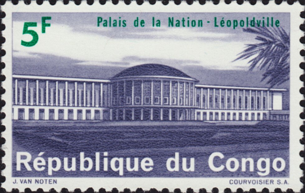 Visibility: public Image owner: none postage 9/15/1964 5fr grayvio&grn d=National Palace (1964) unwmk Crops No visible images cropped from this one. Measurements Resolution is unknown. Source Source name: Colnect File URL: http://i.colnect.net/b/5640/286/Palace-of-The-Nation-Léopoldville-Kinshasa.jpg Uploaded November 20, 2019, 2:43 pm by Stan Shebs |
