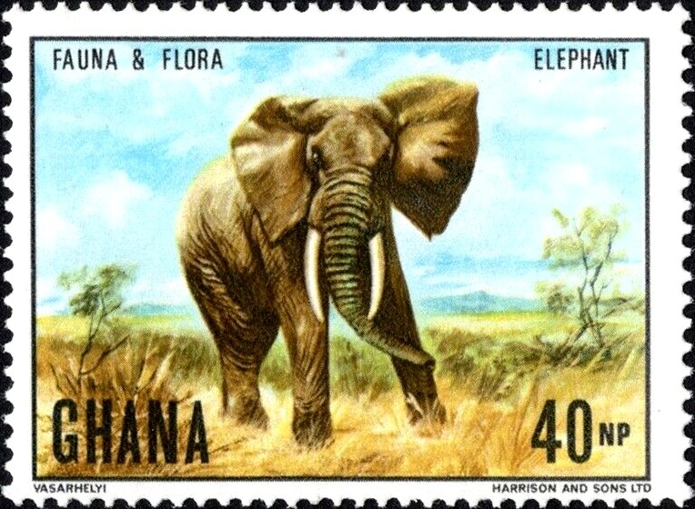 Visibility: public Image owner: none postage 40np multi dt=fauna and flora (1970 Ghana) d=Loxodonta africana (1970) wmk=star & G mult Crops No visible images cropped from this one. Measurements Resolution is unknown. Source Source name: Colnect File URL: http://i.colnect.net/b/5993/799/African-Elephant-Loxodonta-africana.jpg Uploaded December 4, 2019, 6:39 pm by Stan Shebs |