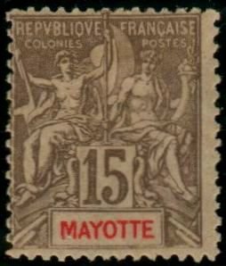 Type: stamp Issuer: Mayotte Date: 1900 Denom: ?