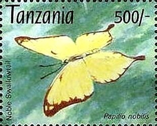 Visibility: public Image owner: none postage 11/8/1993 500sh multi issue=Butterflies 1993 dt=butterflies (1993 Tanzania) d=Papilio nobilis unwmk perf=13 Crops No visible images cropped from this one. Measurements Resolution is unknown. Source Source name: Colnect File URL: http://i.colnect.net/b/6348/894/Noble-Swallowtail-Papilio-nobilis.jpg Uploaded January 27, 2020, 7:33 pm by Stan Shebs |